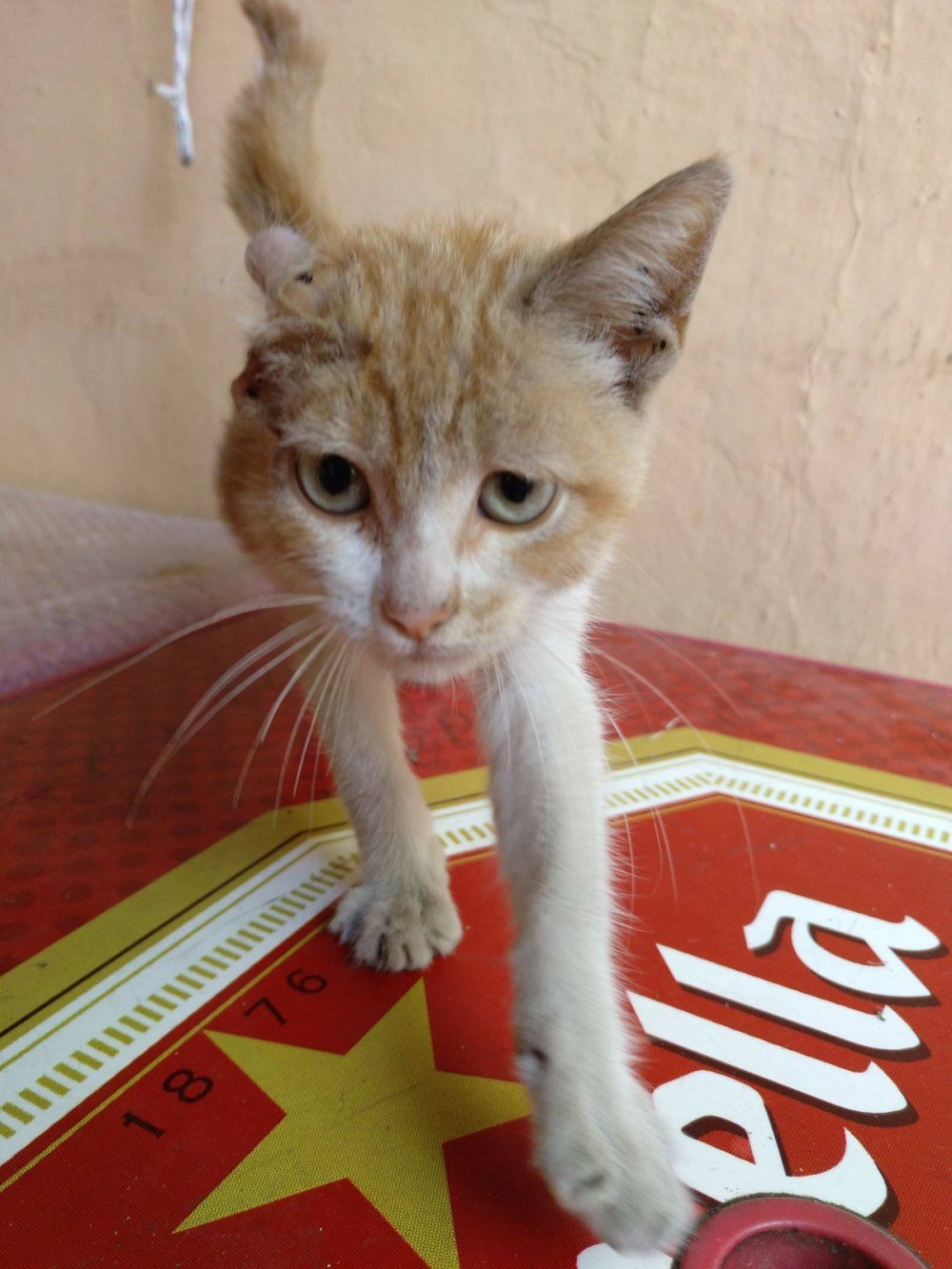Martin fue encontrado en el campo con su orejita cortada. Según informe veterinario a Martin alguien le cortó su orejita con un cuchillo, ya que el corte es limpio y recto. Martin era un pequeño amoroso, que pedia mimos y un sitio seguro en el que poder vivir. Además tambien tenia daño en una de sus patas traseras.
